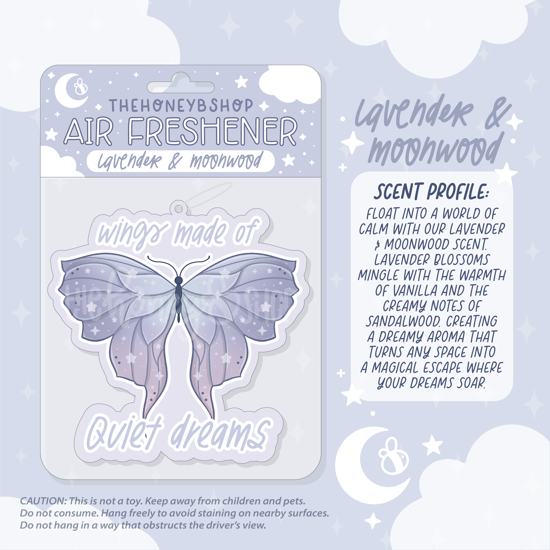 - Lavender & Moonwood Decorative Air Freshener (Scented: Lavender, Vanilla + Sandalwood)