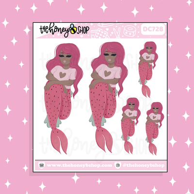 Strawberry Mermaid Babe Doodle Sticker | Choose your Skin Tone!